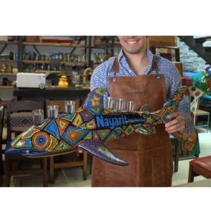 Tiburón Porta Shots – Arte Huichol (Chaquira)