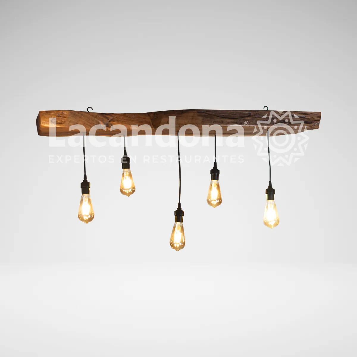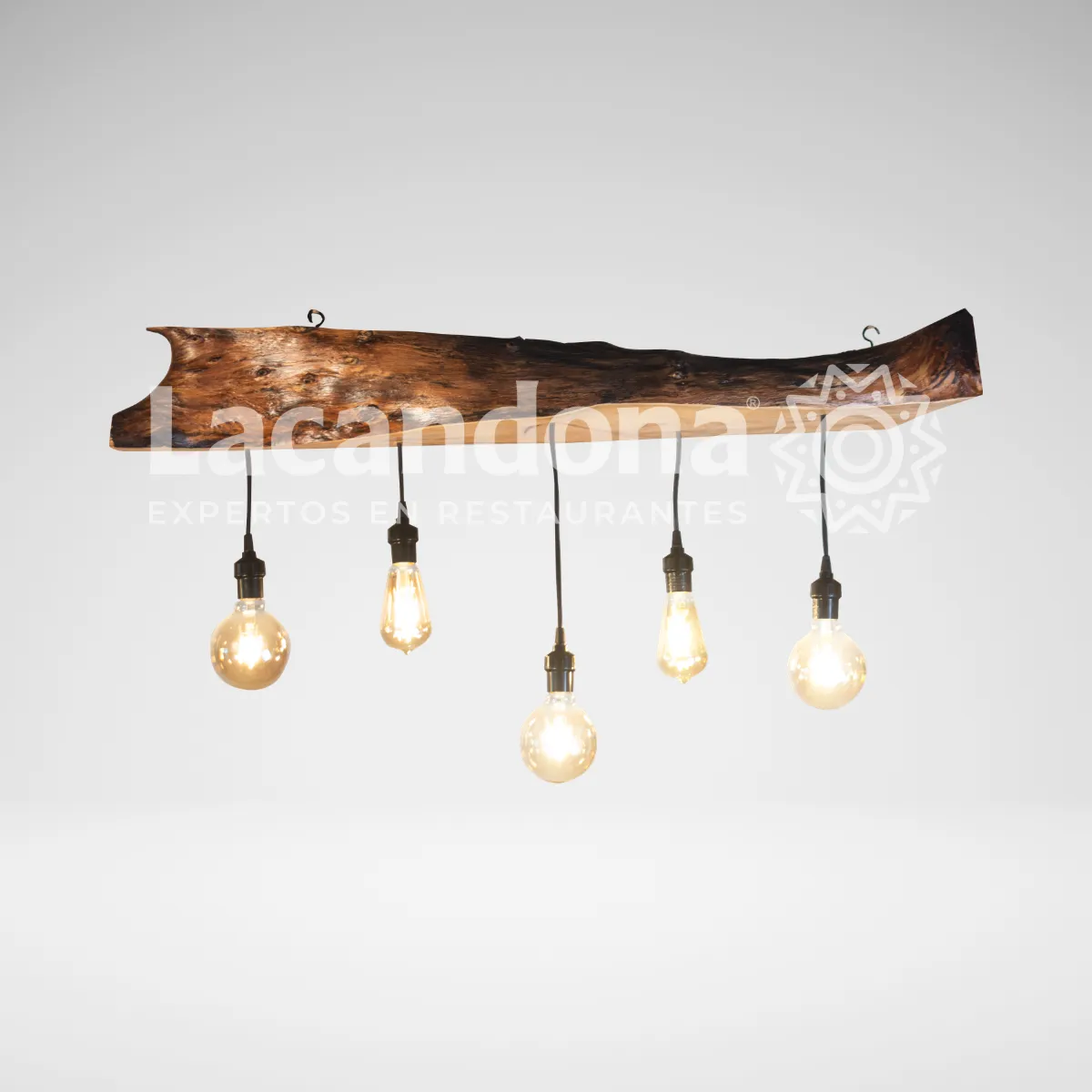 Transforma el ambiente de tu restaurante con la Lámpara Bloque Natural de Muebles Lacandona. Esta pieza colgante de diseño orgánico presenta un bloque sólido para incorporar luces suspendidas a diferentes alturas. Es el complemento ideal para crear atmósferas acogedoras, resaltando la identidad tradicional con un toque contemporáneo y profesional.