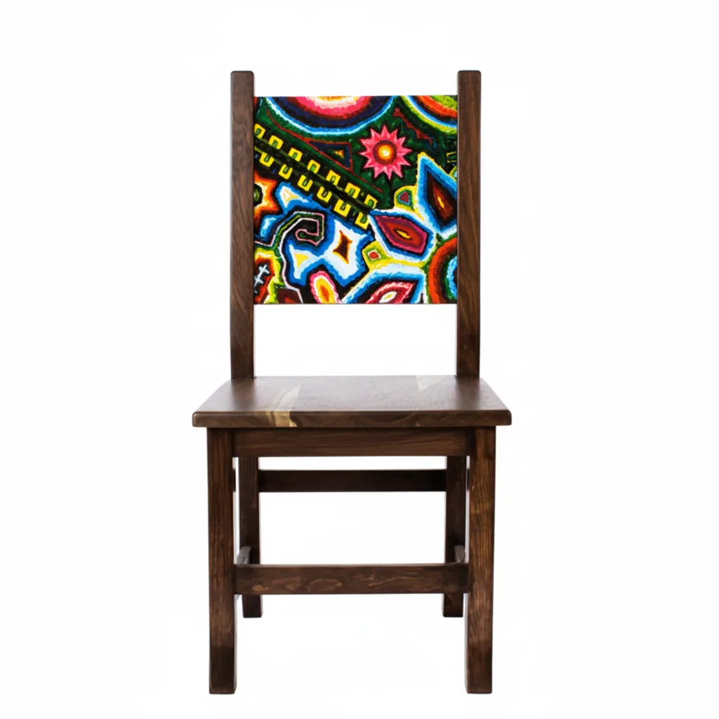 Una pieza inspirada en el arte huichol. Perfecta para restaurantes mexicanos que buscan proyectar identidad mexicana auténtica, colorida y de lujo a través de mobiliario impactante. Transforma la estética de tu restaurante con la Silla Huichol, personaliza el diseño y los colores, elige y crea el modelo que mejor se adapte a tu restaurante.