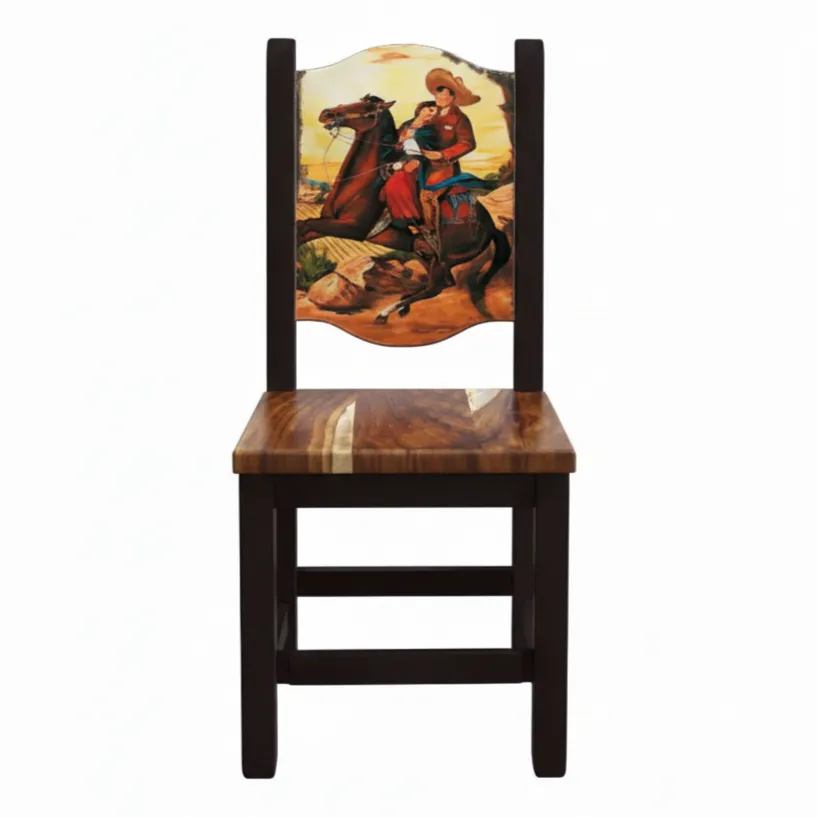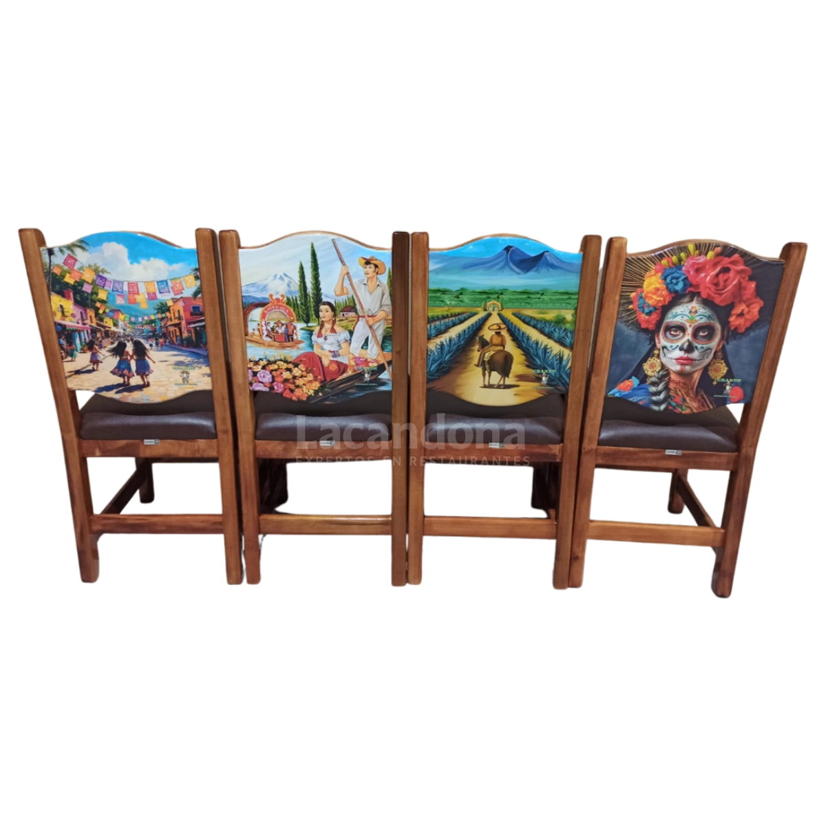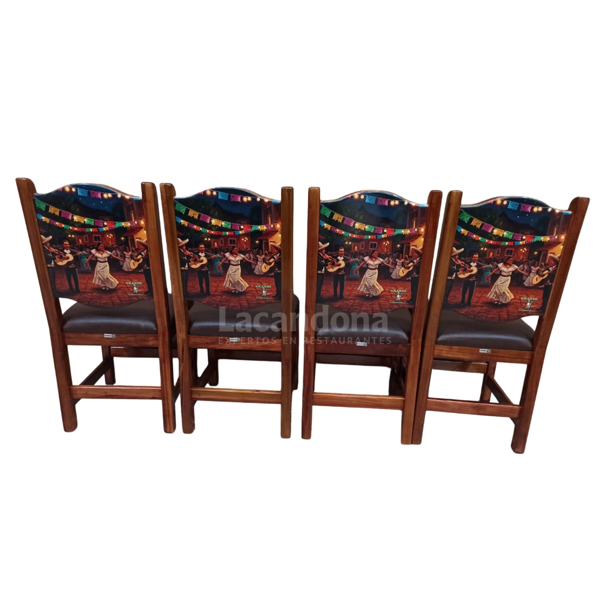 Si buscas una silla llena de vida y tradición mexicana, la Silla Tapatía es la opción perfecta para tu restaurante. El diseño es personalizado, podemos diseñar el respaldo ilustrado que rinda homenaje a la cultura ecuestre de México como más te agrade.