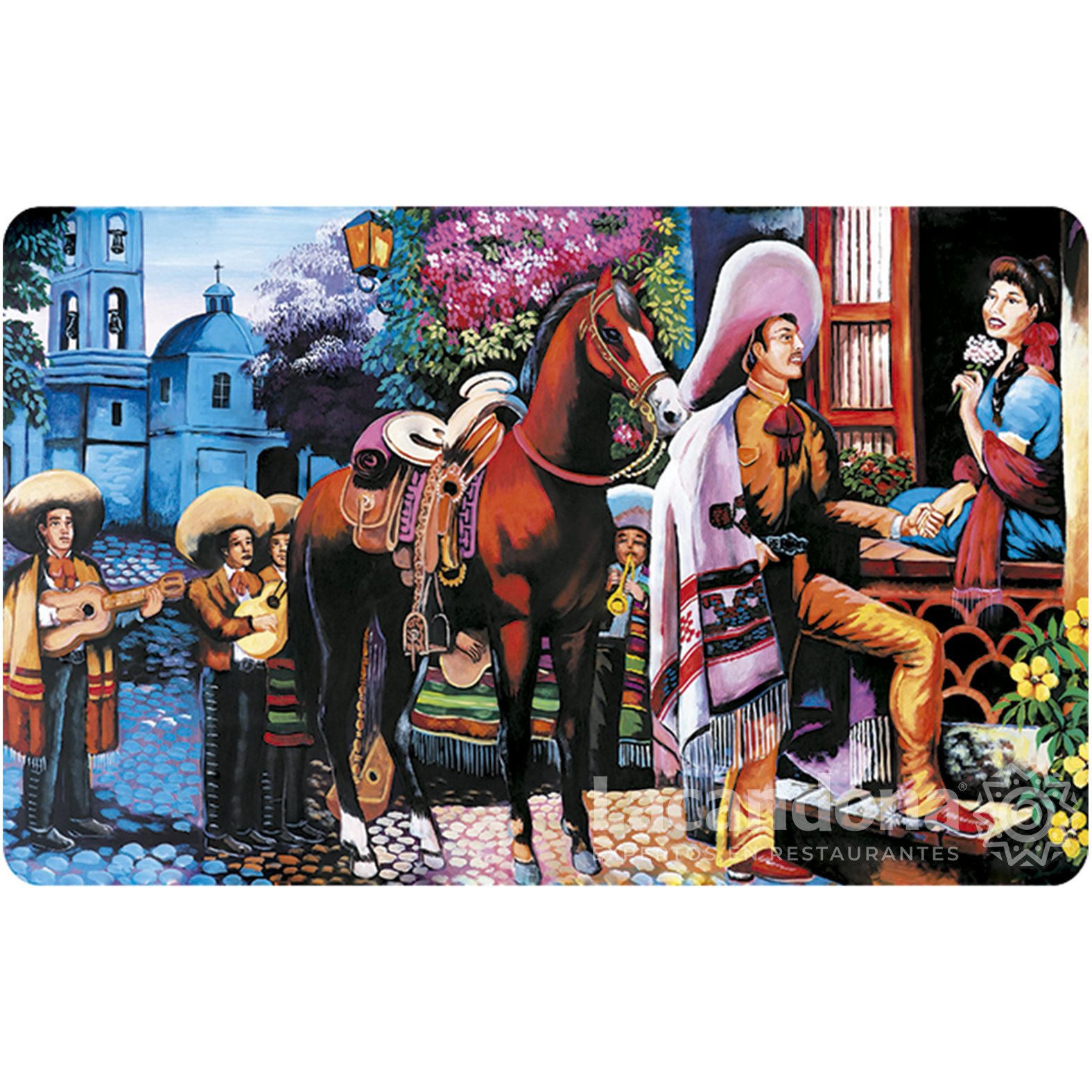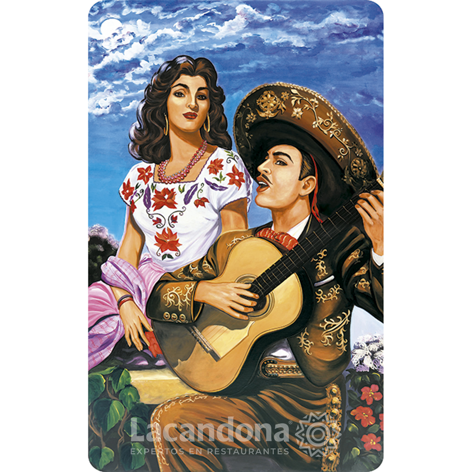 Dale un toque auténtico y cultural a tu restaurante con esta mesa de madera sólida decorada con un espectacular diseño inspirado en el romanticismo mexicano. Su cubierta muestra una pintura de una pareja mexicana cantando serenata, evocando la tradición y la belleza del romanticismo mexicano.
