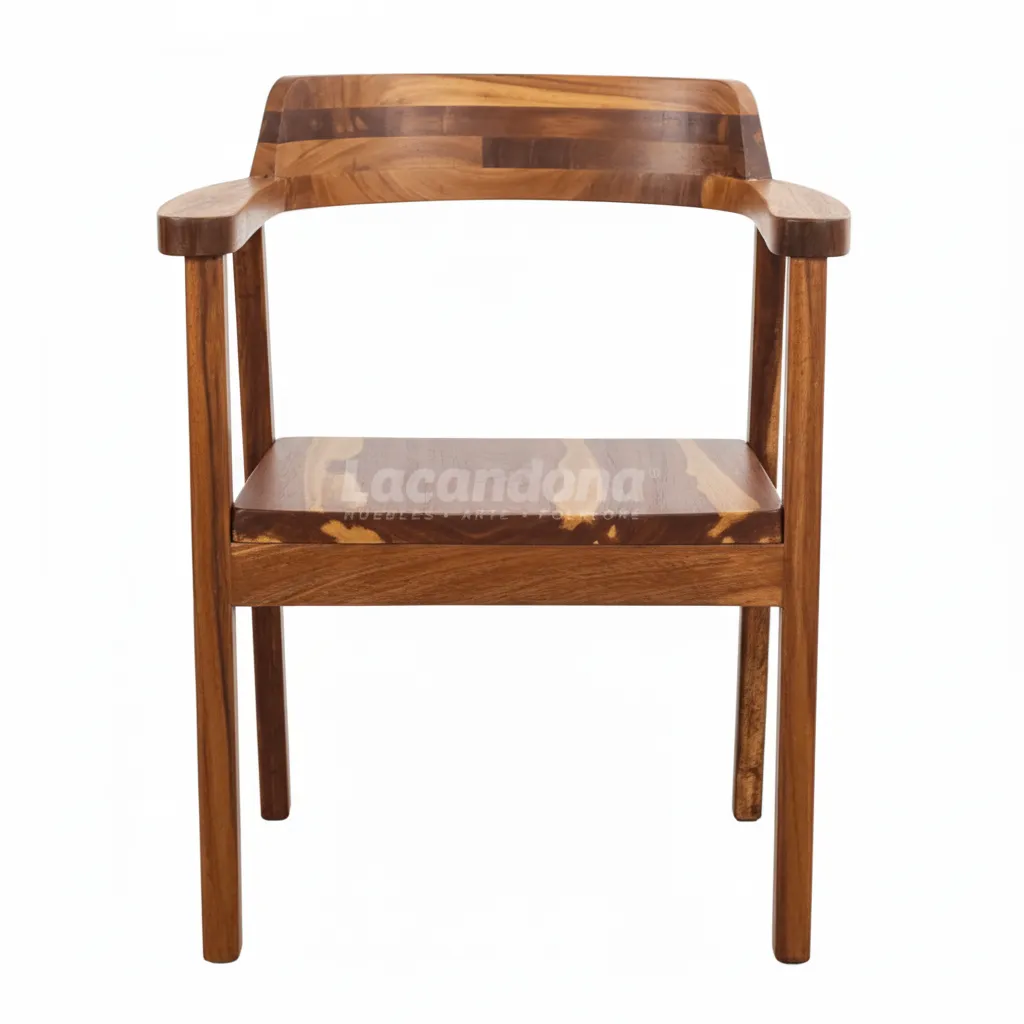 Si buscas calidez sofísticada en tu restaurante, nuestra Silla Coral de estilo contemporáneo es perfecta para ti. Esta silla destaca por su veteado natural a lo largo de toda su estructura, y sus tonos profundos que resaltan la belleza auténtica de la madera sólida.